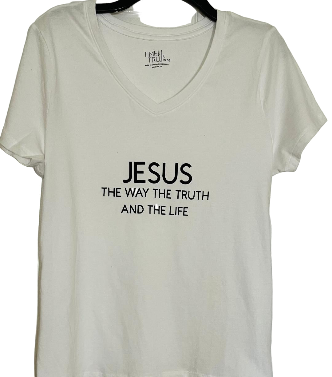 T SHIRT JESUS THE WAY THE TRUE & THE LIFE PRINTED IN BLACK